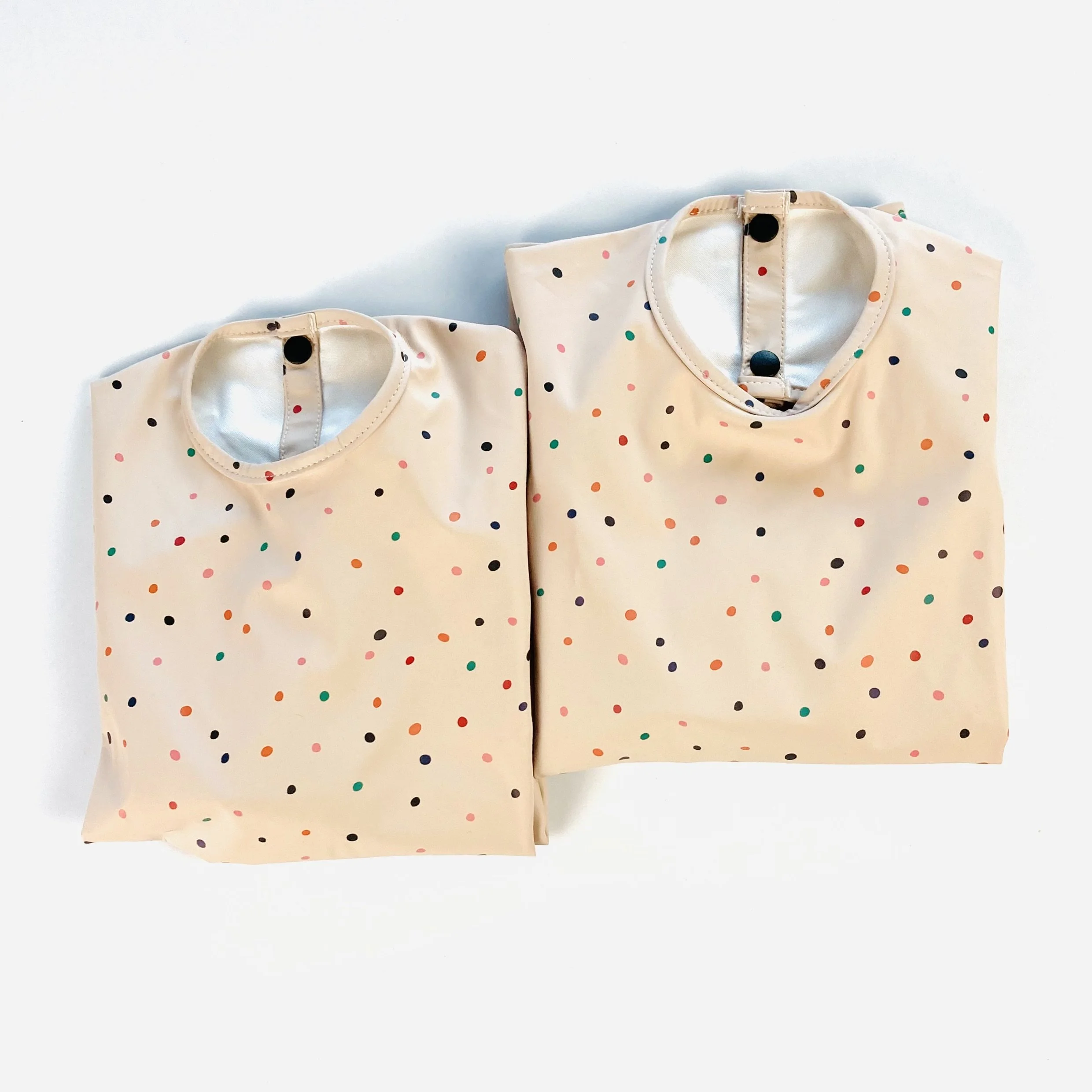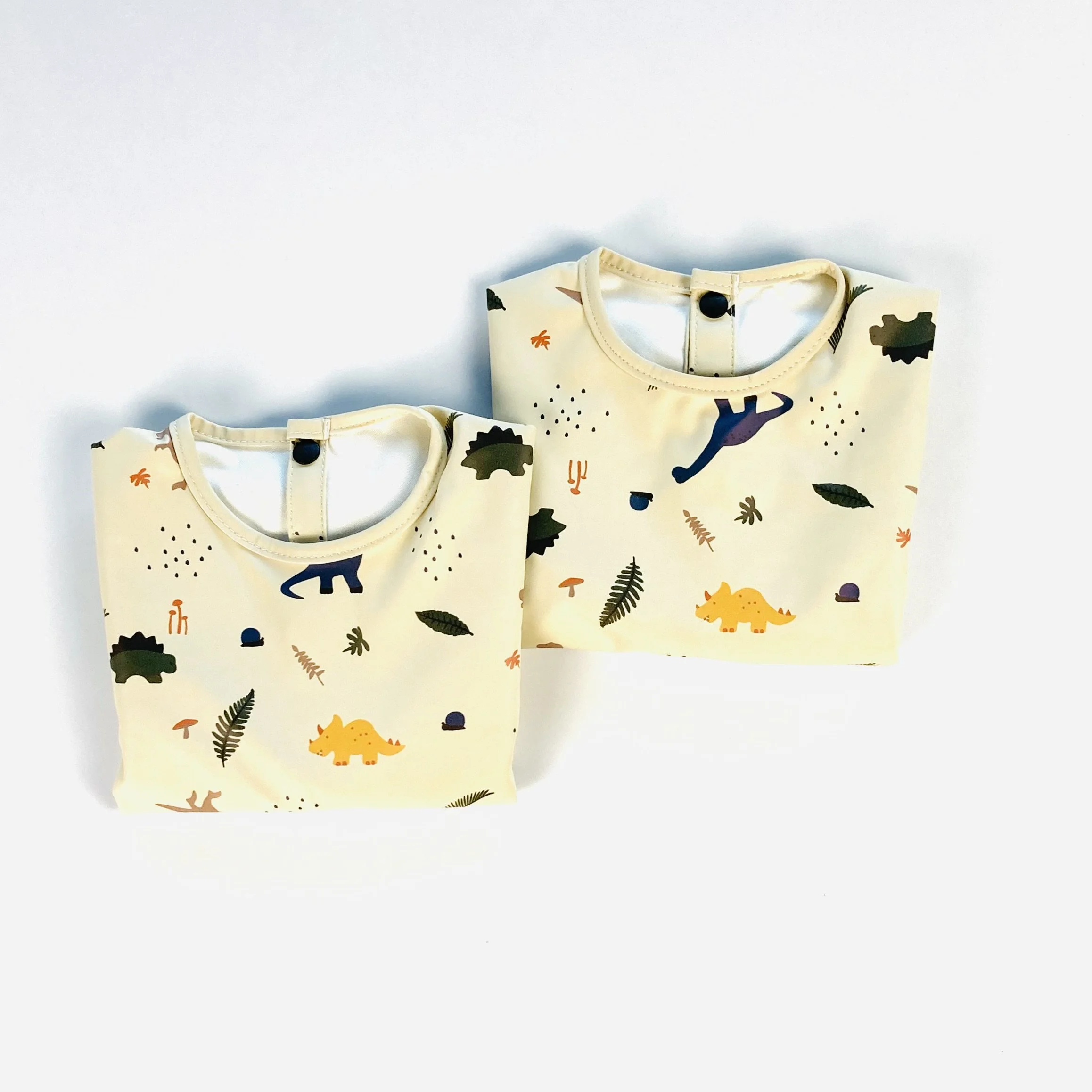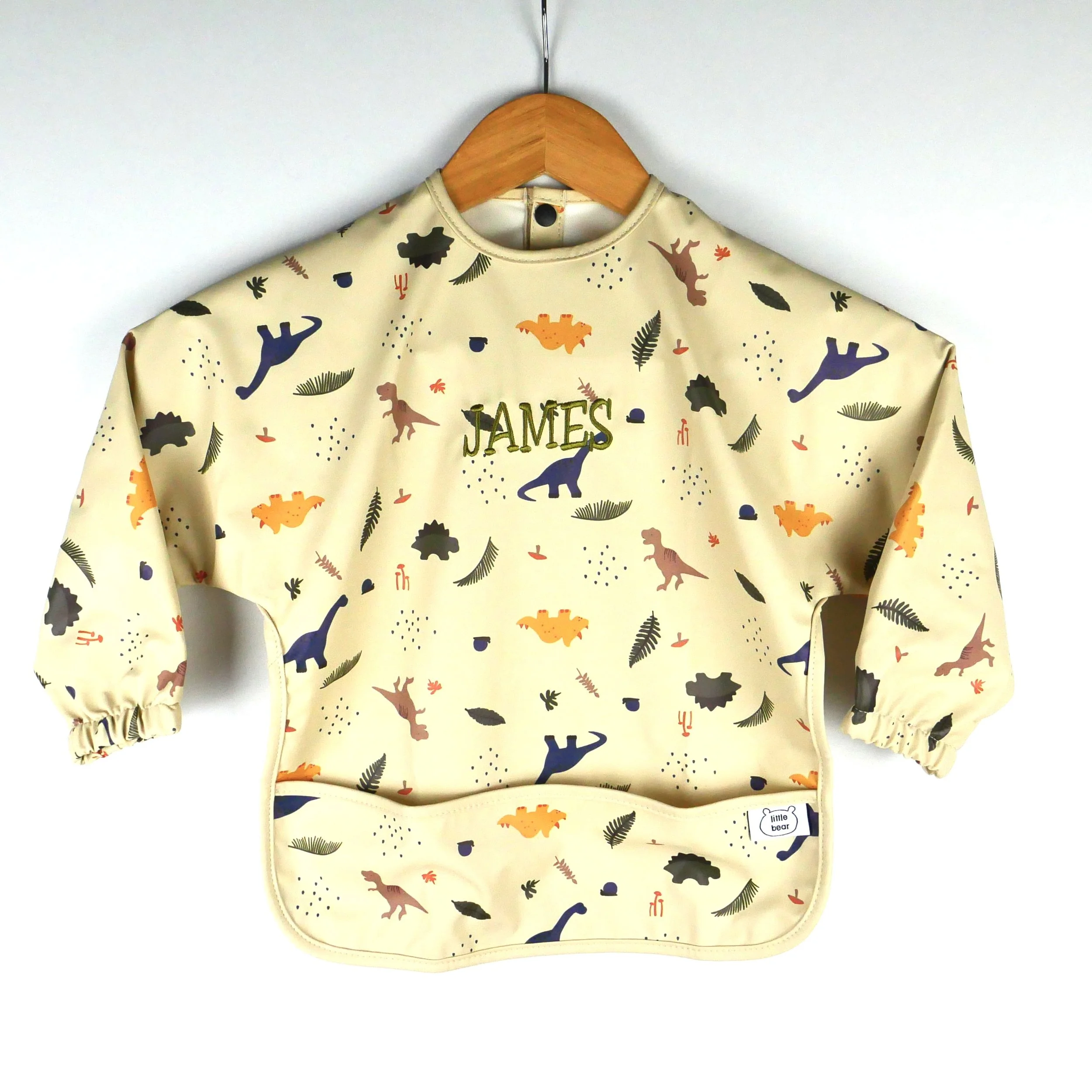 Our long sleeve waterproof bibs are now available with your little one’s name embroidered on the front. (Name details can be added at checkout).