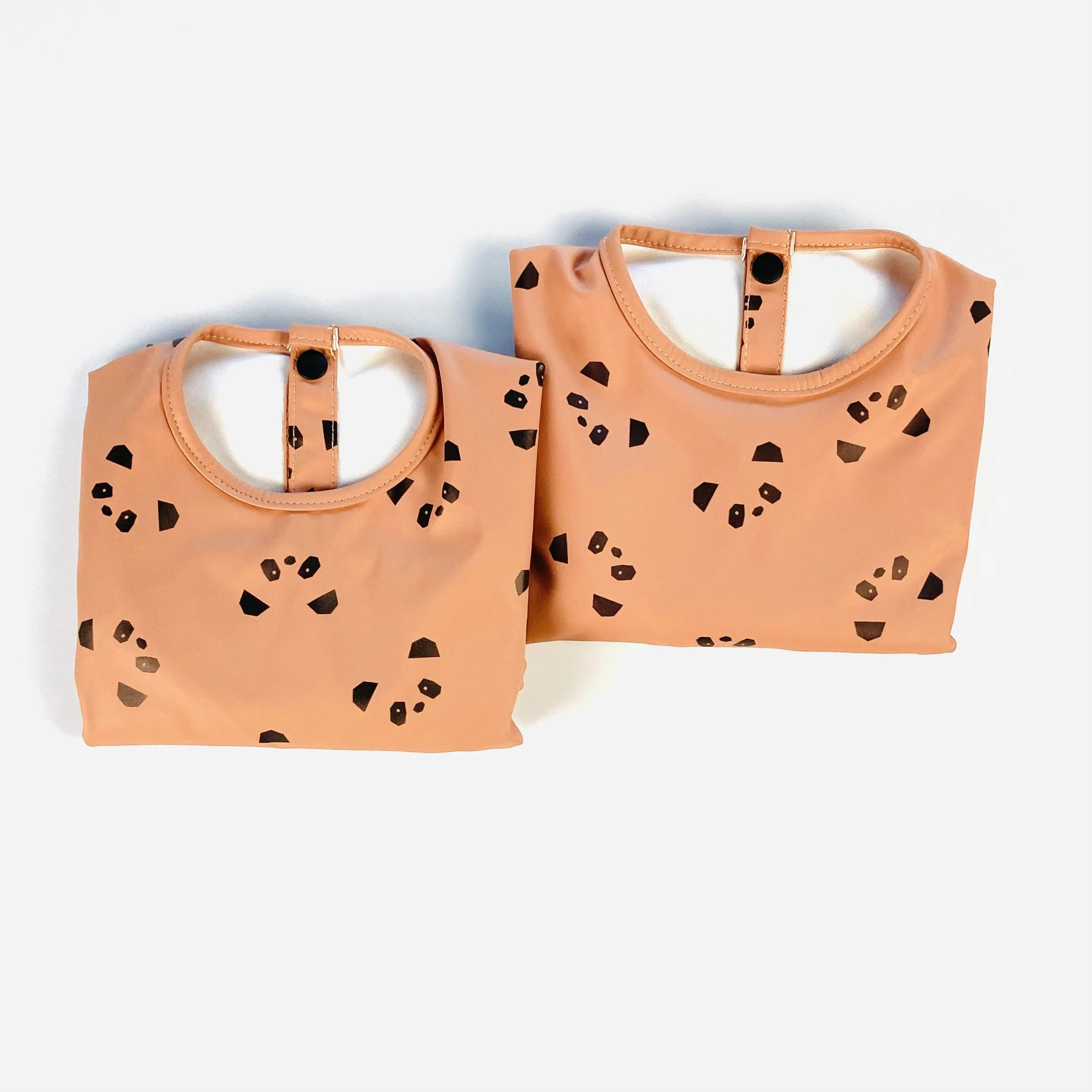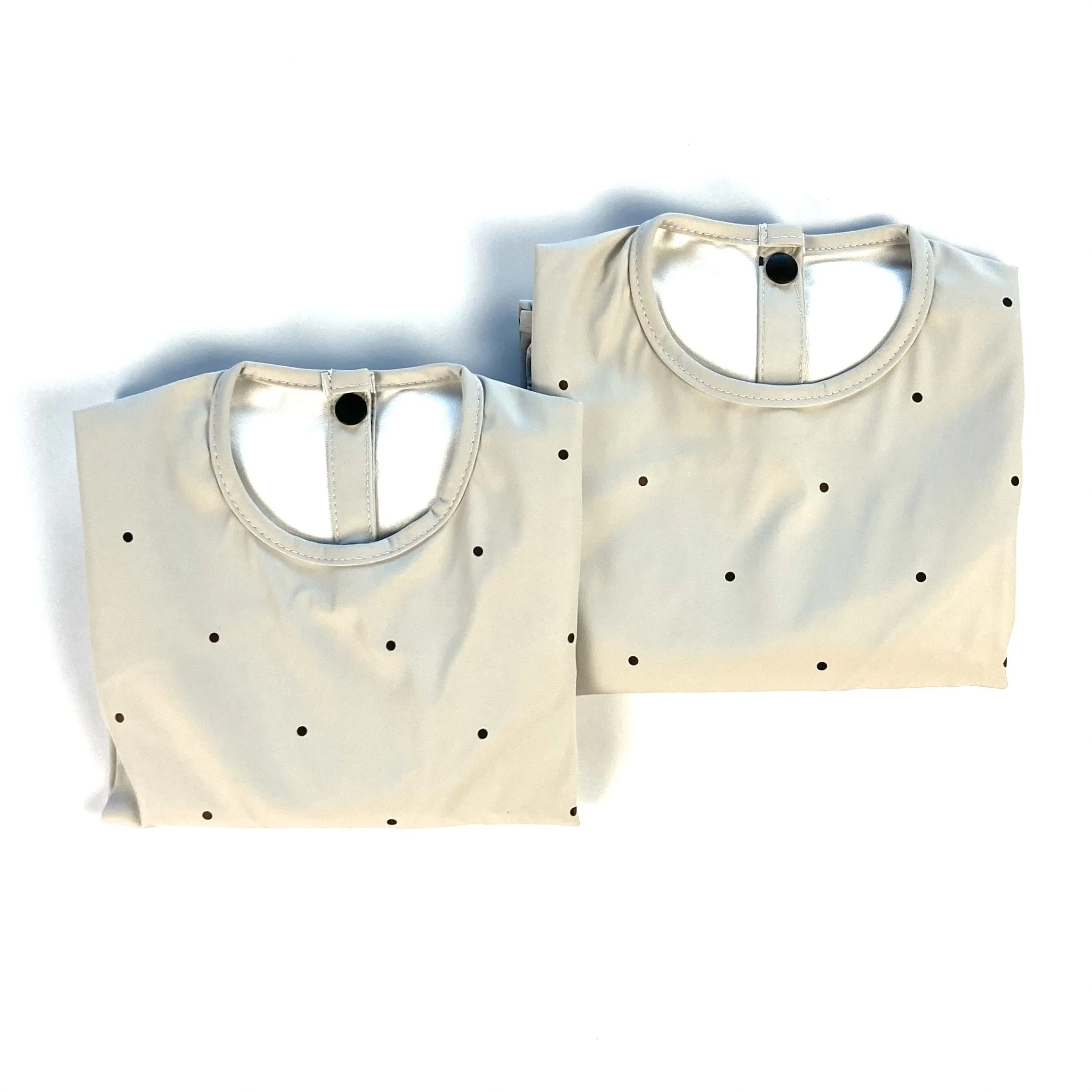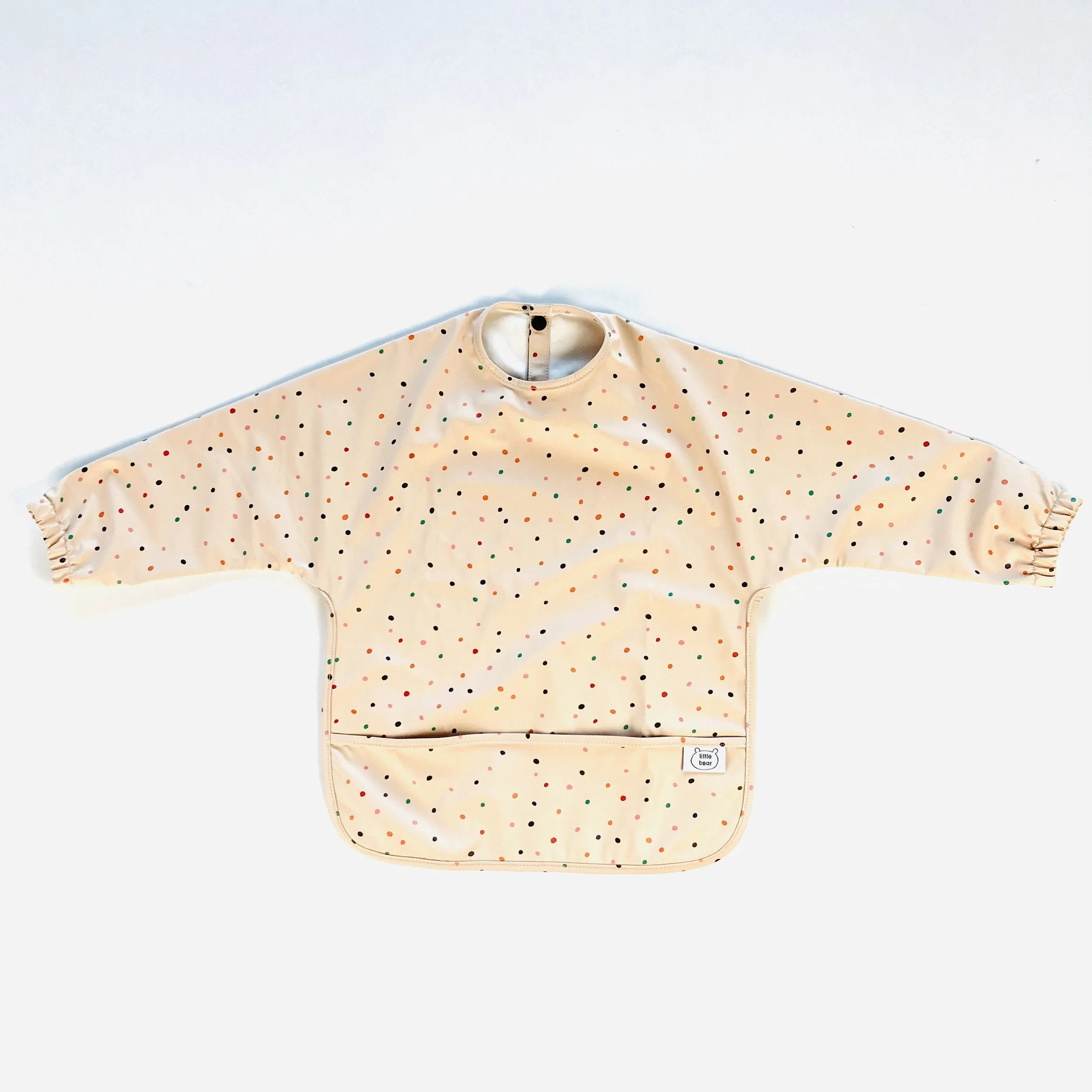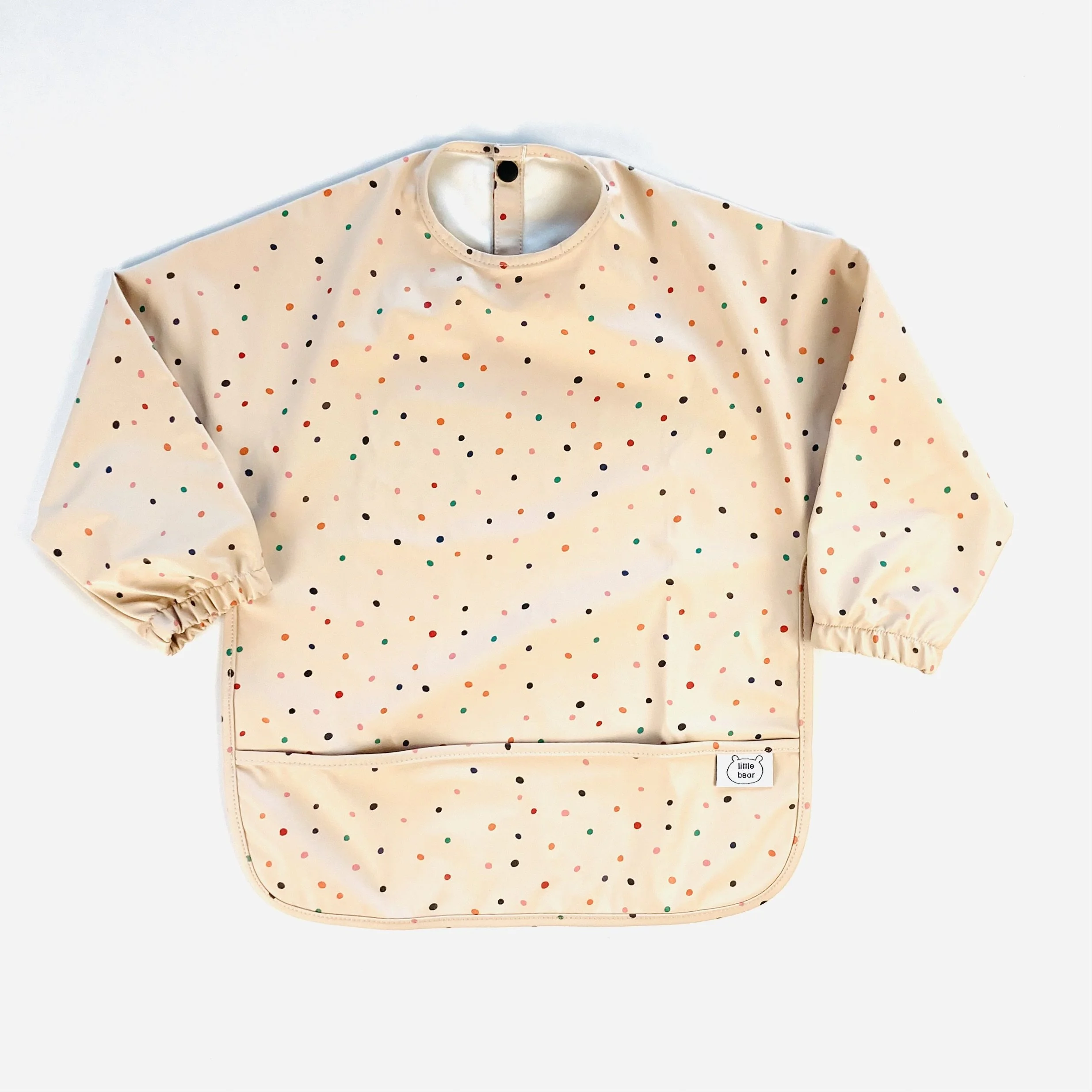 Our long sleeve waterproof bibs are now available with your little one’s name embroidered on the front. (Name details can be added at checkout).